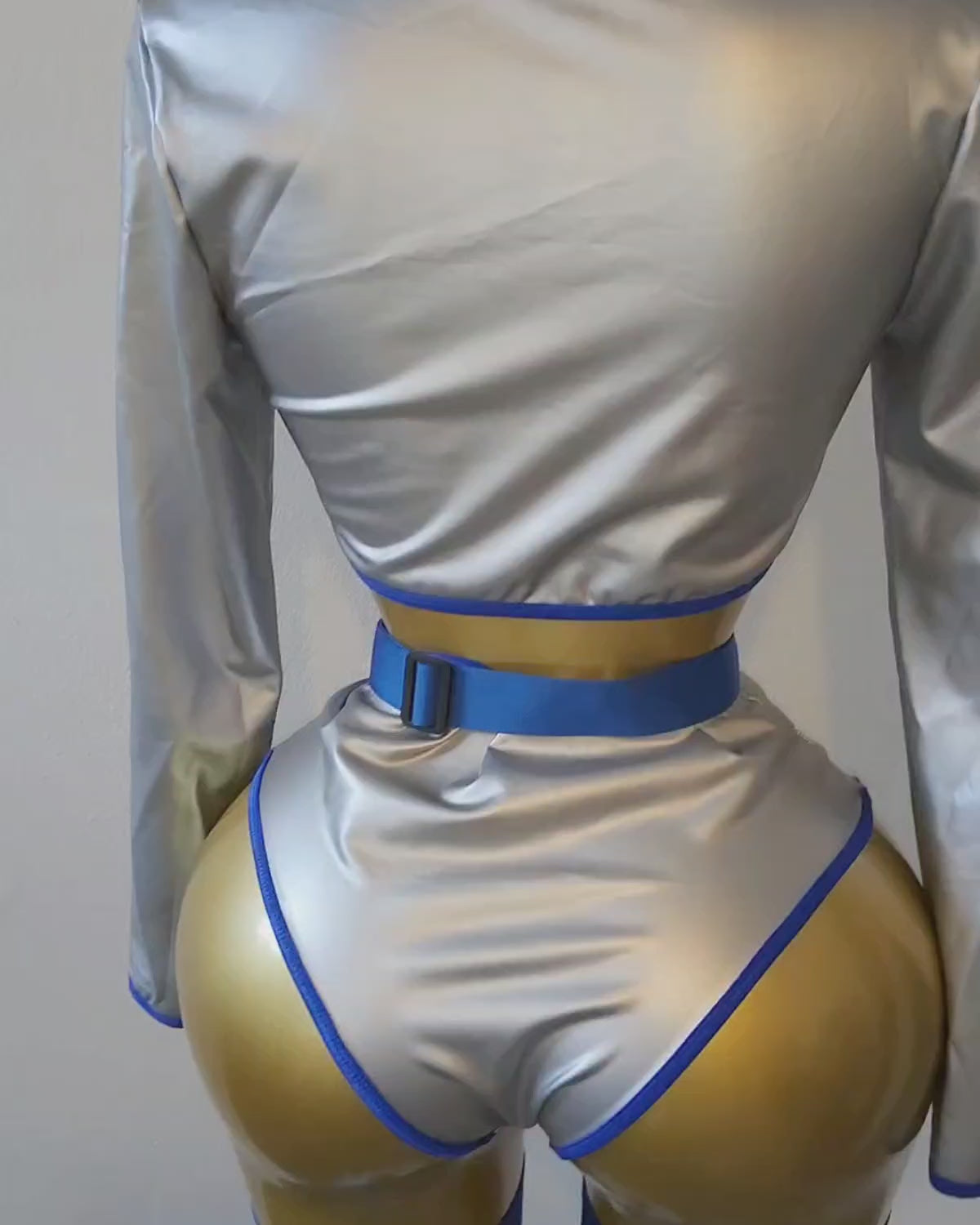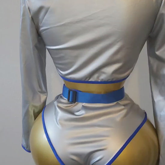 Step into the cosmos in the Galactic Seductress Costume Set β a metallic fantasy made for the woman who shines brighter than any star. This silver two-piece features a curve-hugging cropped top with a daring keyhole cut-out, high-waist shorts that sculpt your silhouette, and bold blue strap details that add just the right amount of edge. Whether youβre conquering the galaxy or commanding attention on Earth, this look says fearless, flirty, and in full control.