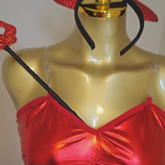 Set the night on fire in the Midnight Devil Costume Set — where elegance meets temptation. This glossy black latex-look dress hugs every curve, while the matching gloves and devil horns complete your dangerously seductive look. Whether you’re turning heads at a Halloween party or owning a sultry photoshoot, this outfit was made for bold women who love to play with power.